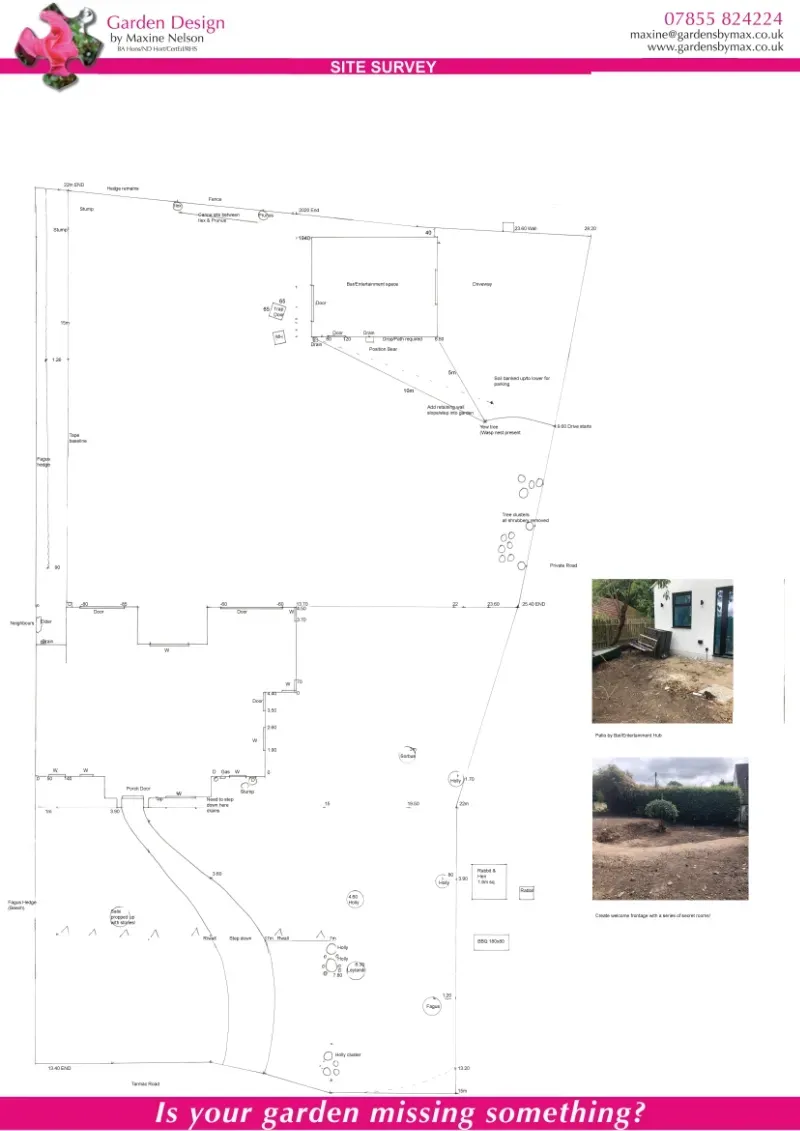 Preparation of a scaled 'baseplan' of your outdoor space - a survey is undertaken prior to design work and a photographic record of your site.